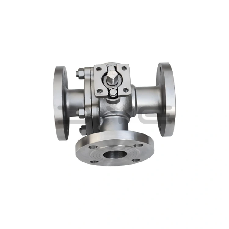 LT (průtokový kanál) 3-cestných kulových ventilů z nerezové oceli s přírubou pro vlastní potřebu se dělí na dva typy, oba využívající 90° otočnou otevírací a zavírací konstrukci. Umístění rukojeti je jasné, přepínání je plynulé a provoz je pohodlný a spolehlivý, splňující komplexní potřeby řízení průmyslových potrubí.